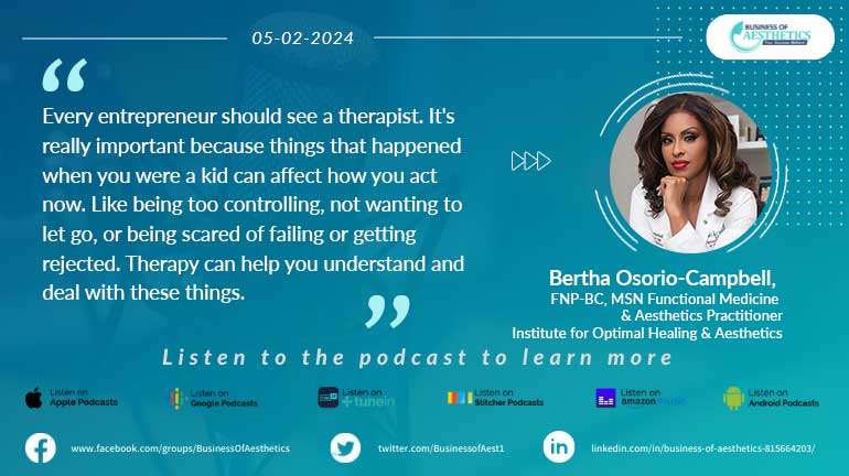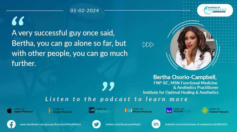 In this latest podcast episode, Bertha Osorio Campbell, a seasoned family nurse practitioner, takes listeners on a fascinating journey through functional medicine and aesthetics. From her decision to venture into a solo practice just before the pandemic to her initial reluctance toward aesthetics, which later transformed into a deep passion, Bertha’s story is one of evolution and growth.