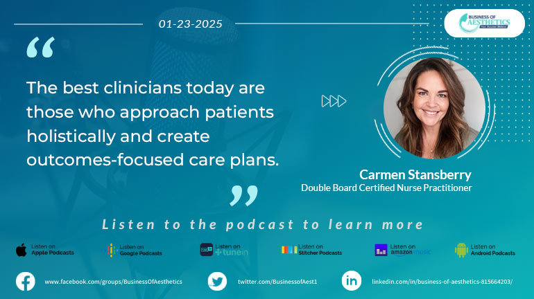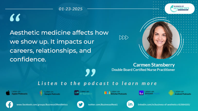 Welcome to a compelling episode of the Business of Aesthetics Podcast, where we explore the evolving intersection of aesthetics and wellness with Carmen Stansberry, a double board-certified nurse practitioner and founder of The Advanced Practice. With over two decades of clinical expertise spanning women’s health, menopause care, obstetrics, and more, Carmen is a trailblazer in empowering aesthetic professionals to transform their practices through innovative strategies. She brings a wealth of experience to the conversation, sharing insights that will resonate with anyone looking to bridge aesthetics with holistic wellness.