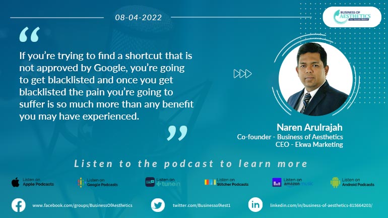In this week’s edition, Naren Arulrajah and Jeff discuss the opportunities Google organic marketing presents for aesthetic practitioners, elaborate on how to leverage existing customers and use MVP events as a marketing tool.